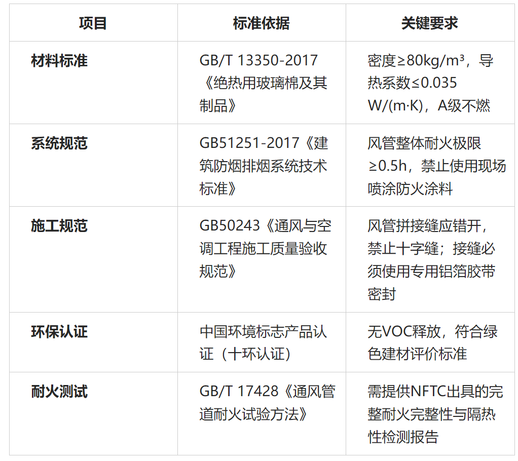 無甲醛防排煙玻璃棉?是一種專用于建筑消防排煙系統(tǒng)的高性能保溫隔熱材料,其核心特征為?無甲醛粘結(jié)劑體系?與?A級不燃耐火性能?,滿足《建筑防煙排煙系統(tǒng)技術(shù)標準》(GB51251-2017)對風管隔熱層的強制性要求。