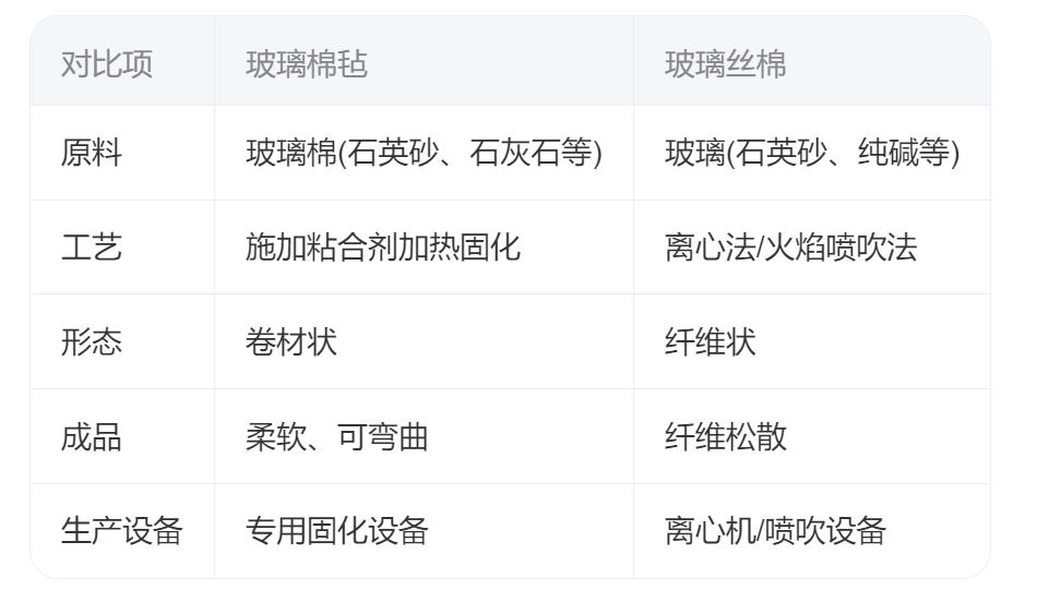 玻璃棉氈和玻璃絲棉的區(qū)別