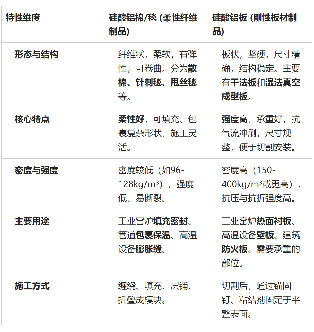 “硅酸鋁板保溫棉”并非一種標準產(chǎn)品名稱,這很可能是對 硅酸鋁棉(纖維形態(tài))和硅酸鋁板(板材形態(tài)) 兩種不同形態(tài)的混淆。它們是同一基礎材料(硅酸鋁纖維)制成的不同制品,用途和特性差異顯著。