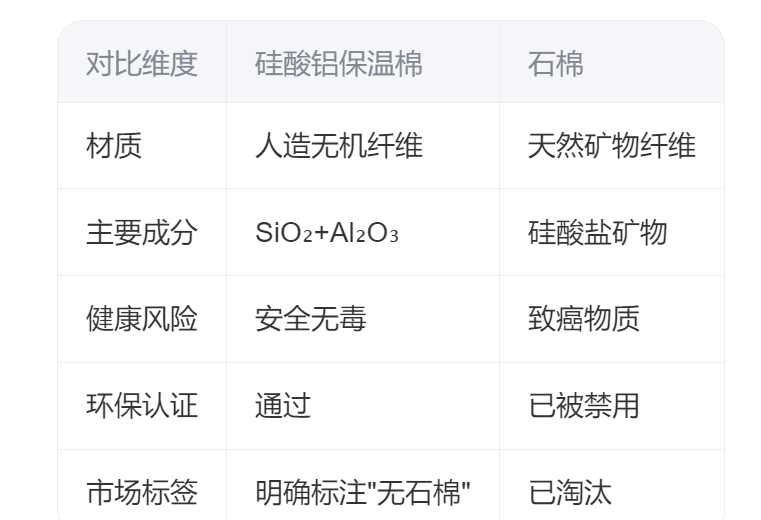硅酸鋁保溫棉?:主要成分為二氧化硅(SiO?,48-52%)和氧化鋁(Al?O?,43-49%)是一種人造無機纖維材料通過高溫熔融工藝制成石棉?:主要成分為硅酸鹽礦物是一種天然礦物纖維含有鎂、鐵、鈣等元素
