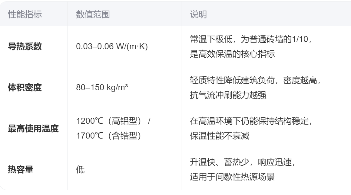 硅酸鋁纖維毯通過?低導熱、高孔隙率?的三維纖維網絡結構實現(xiàn)高效隔熱。其內部充滿大量微米級靜止空氣腔,極大阻斷了熱傳導與對流,使熱量難以穿透,從而實現(xiàn)優(yōu)異的保溫效果。